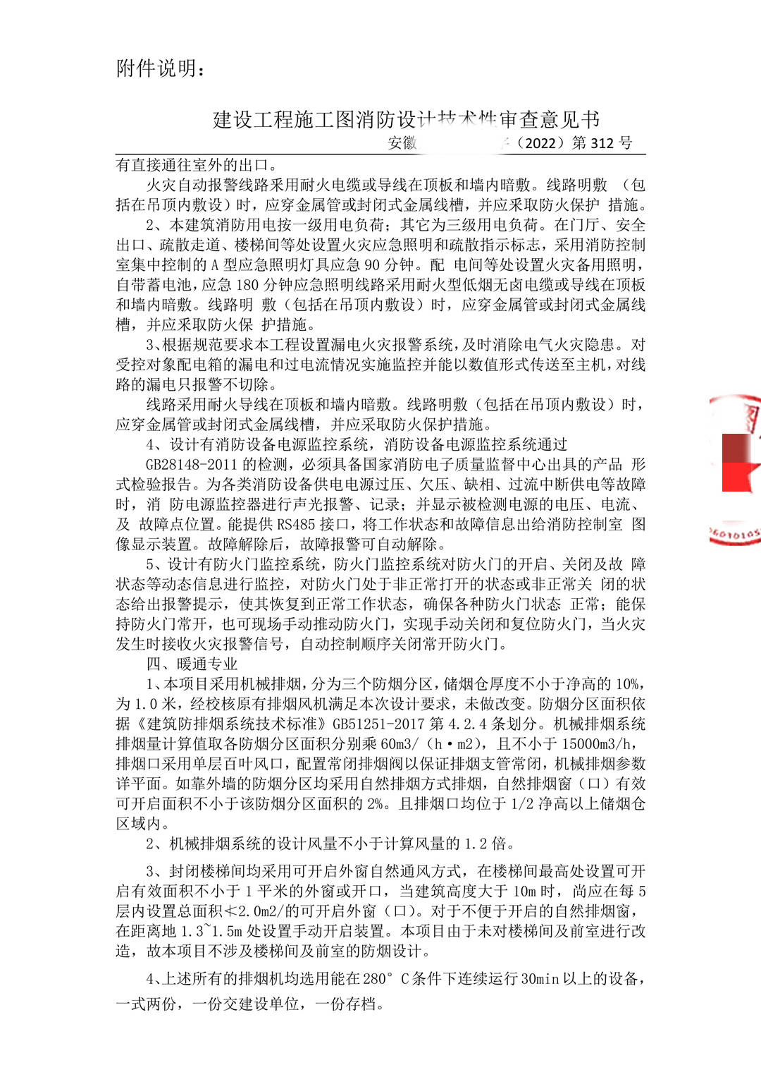 安徽某机构消防审查意见书